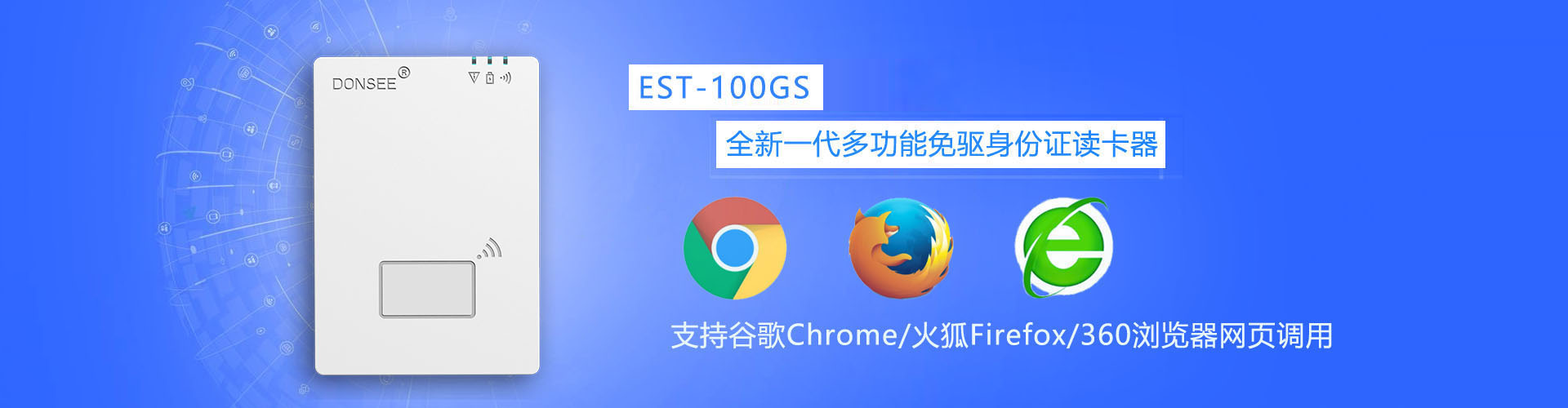 最新身份證閱讀器谷歌火狐360網頁SDK開發包下載此谷歌Chrome身份證閱讀器網頁接口適用東信EST-100GS免驅版第三代身份證讀卡器,其他版本讀卡器不一定能支持穩定使用。